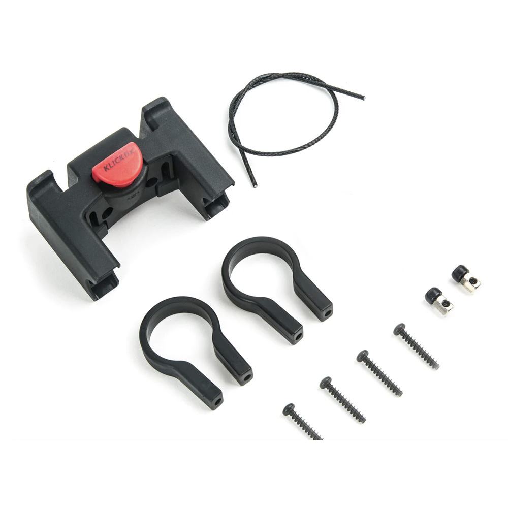 Klickfix styradapter bruges til alle Klickfix cykelkurve, styrtasker og kortholdere. Adapteren skrues direkte på styret. En tynd stålwire forhindrer adapteren i at glide ned, når der kommer vægt i kurven.